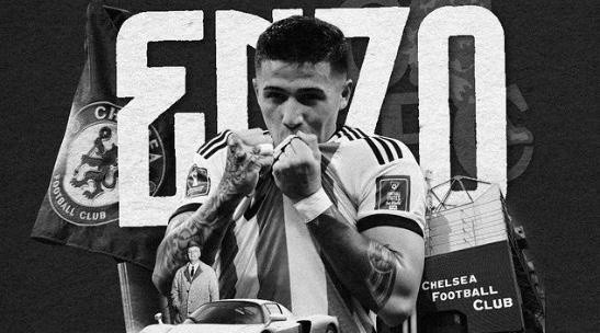 Con esta imagen, Chelsea presentó oficialmente al campeón del Mundo Enzo Fernández | Foto: Chelsea FC