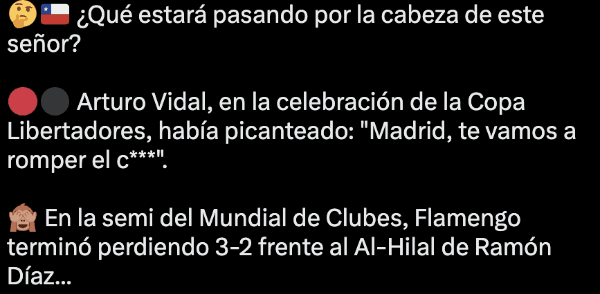 El Diario Olé de Argentina fue claro en su concepto hacia el chileno. “¿Qué estará pasando por la cabeza de este señor?”, indicó el medio transandino en un posteo. Luego, con emojis de burla, claramente, se mofaron del mediocampista del Fla.