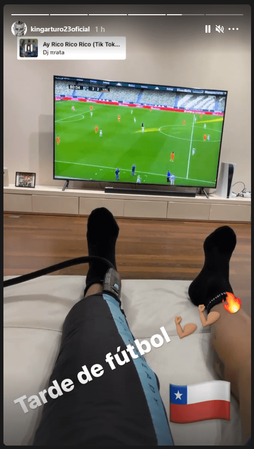 No obstante, este domingo el jugador aprovechó la instancia para mostrar su nuevo proceso y cómo sigue avanzando en la lesión, la cual estuvo acompañando con la visualización de la competencia europea.
