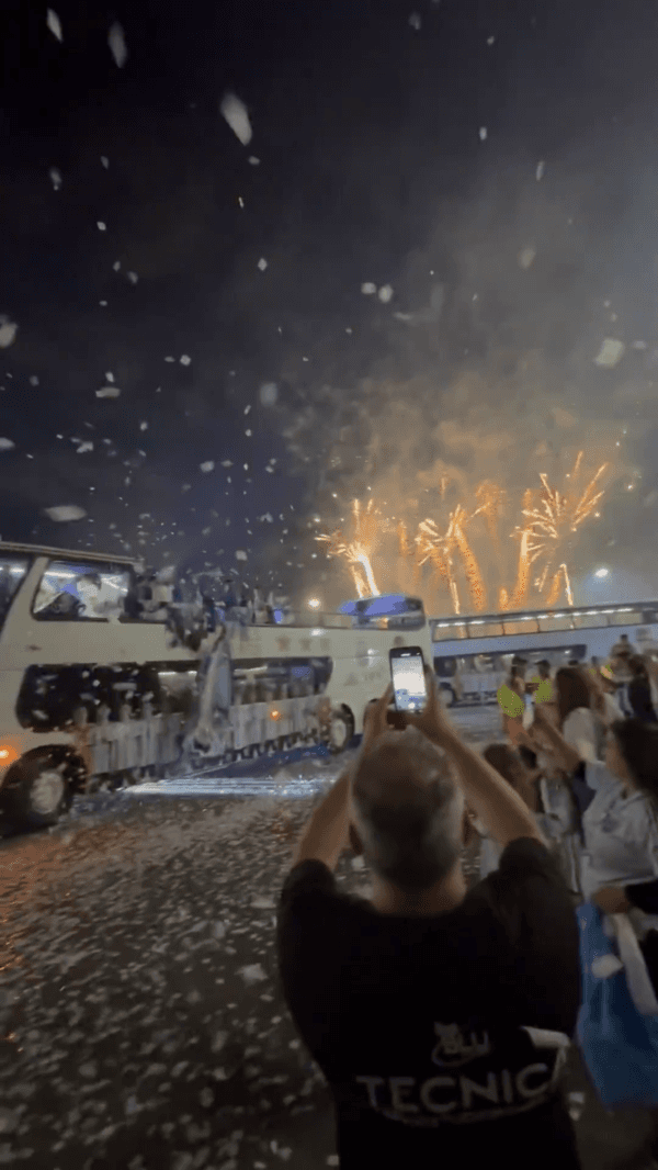 Una vez llegaron a Ezeiza los esperaba otra alfombra roja y un show pirotécnico, de luces y serpentinas. Allí se quedarán los jugadores hasta algunas horas más cuando realicen un recorrido por las principales calles bonaerenses.