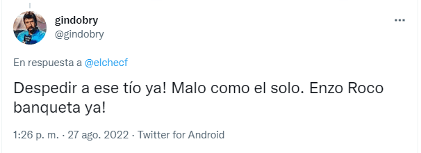 Los dardos apuntaron a que el defensor no estaba mostrando su mejor nivel con la camiseta del Elche y por la cual los dardos fueron apuntados a que no está para jugar en el club, además de considerar a que debe estar próximamente en la banca de suplentes.