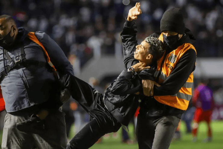 Após o término do jogo entre Santos e Unión La Calera, ontem na Vila Belmiro, um torcedor do Peixe invadiu o campo e deu um pontapé em uma jogador da equipe chilena.