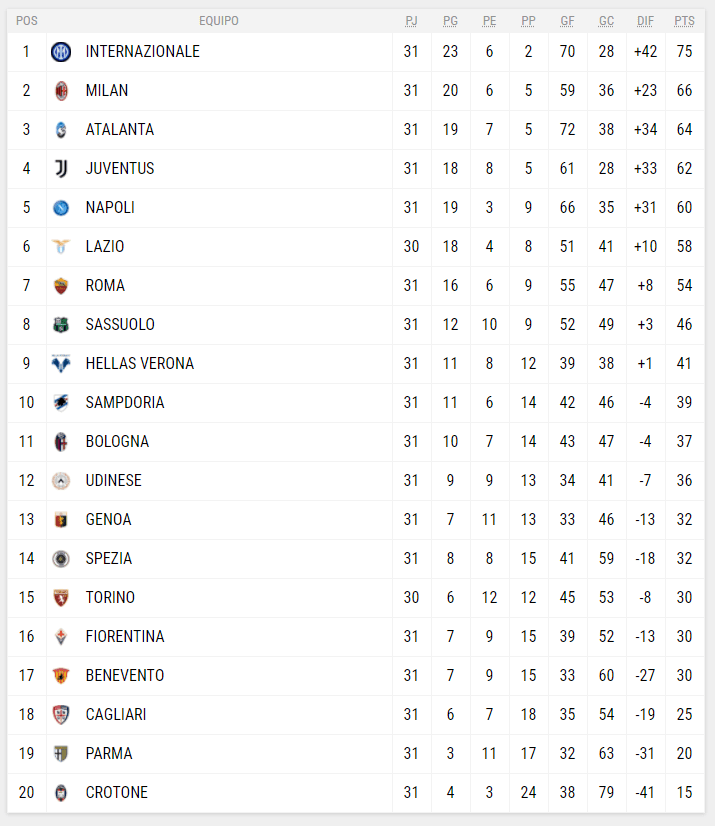 Un empate medianamente positivo para el Inter que logra seguir en lo más alto del campeonato en la Serie A y que en la actualidad se queda con 75 puntos, mientras que el Napoli alcanza la quinta ubicación del certamen con 60 unidades.