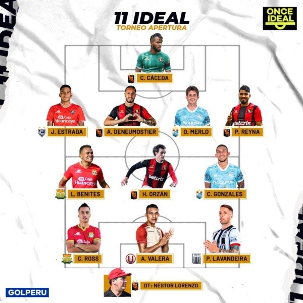 Además del formado en Audax Italiano aparecen en el once ideal el ex defensor de Huachipato Omar Merlo y también Christofer Canchita González, ambos jugadores del Sporting Cristal, el nuevo equipo del ídolo cruzado Diego Buonanotte.