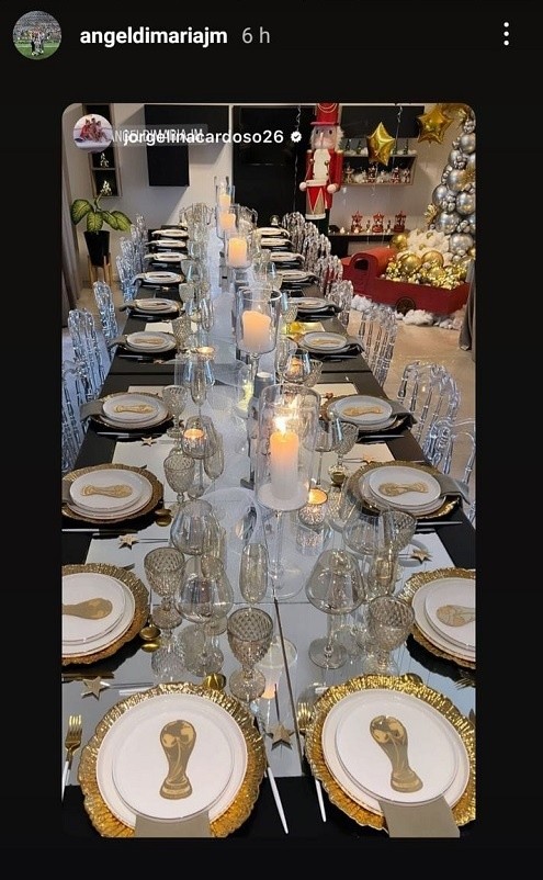 Pero esto no fue lo llamativo, esto porque el ex Paris Saint Germain y Manchester United, entre otros, sorprendió a todos sus seguidores al dejar ver quetodos los platos de la cena navideñatenían una imagen del trofeo que ganó en suelo qatarí.