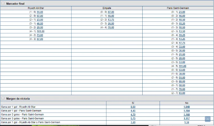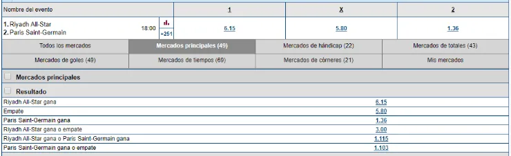¿CUÁNTO PAGA EL TRIUNFO DE PSG O DE RIYADH ALL STAR EN ESTE AMISTOSO?