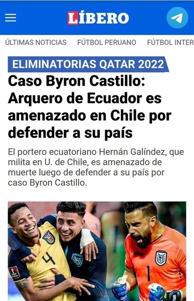 Ahora, fue el turno de la prensa peruana de enloquecer, pero confundiendo todo: El Líbero de Perú aseguró que Hernán Galíndez sufrió amenazas de muerte por defender al país que representa y todo lo que envuelve el caso Byron Castillo, pero…