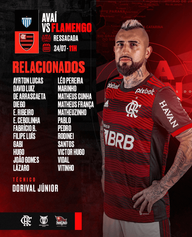 Arturo Vidal ha tenido semanas intensas de entrenamiento en Río de Janeiro para estar presente lo antes posible en las citaciones de Flamengo. Todo esfuerzo trajo su fruto y el King fue ratificado en la citación del elenco brasileño para enfrentar al Avaí por el Brasileirao.