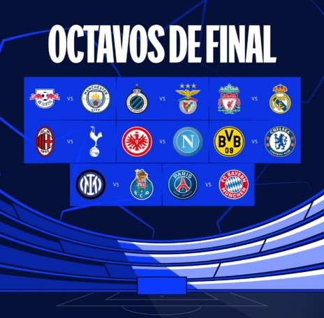 Llaves de los octavos de final de la Champions | Fuente: UEFA Champions League.