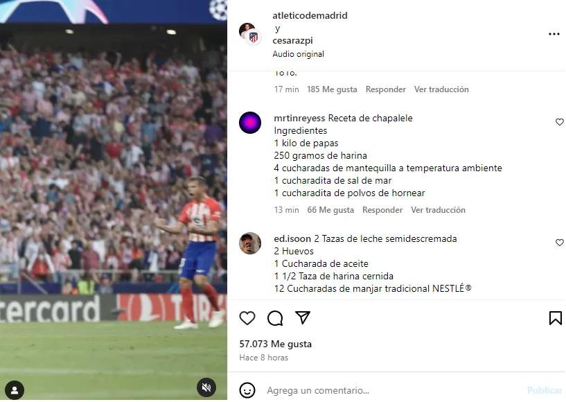 Una gran cantidad de chilenos decidió poner recetas gastronómicas en los comentarios de la última publicación del campeón del mundo, quien cuenta con más de 41 millones de seguidores en Instagram.