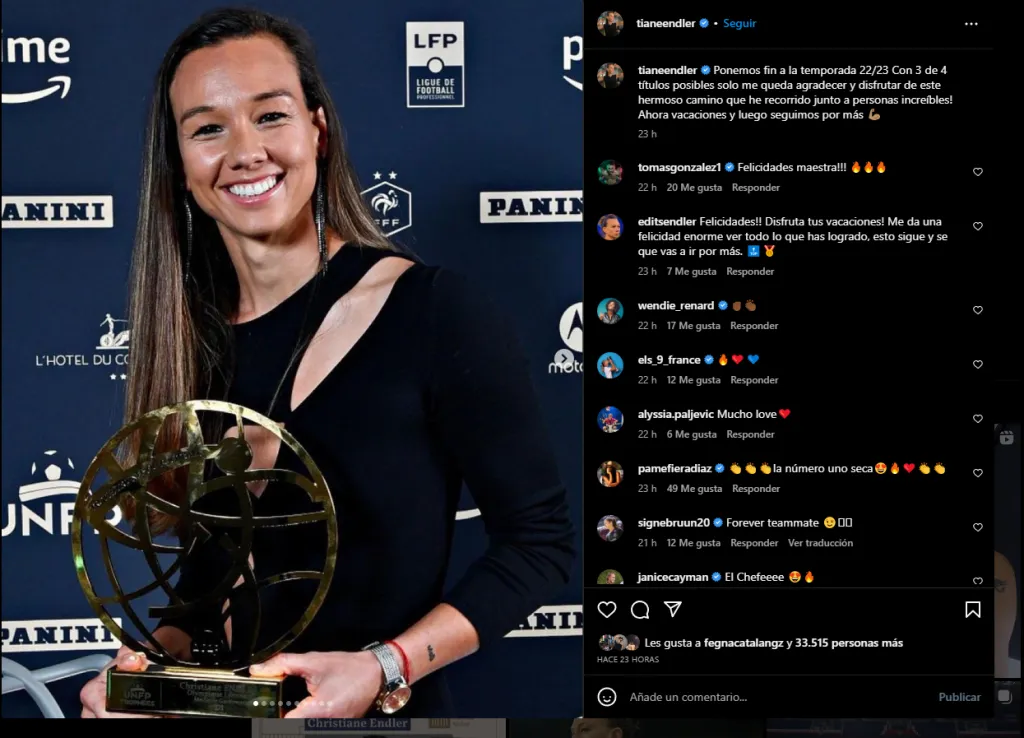 “Ponemos fin a la temporada 22/23. Con 3 de 4 títulos posibles solo me queda agradecer y disfrutar de este hermoso camino que he recorrido junto a personas increíbles”, comenzó diciendo Endler.