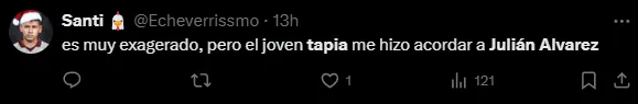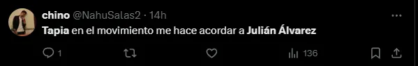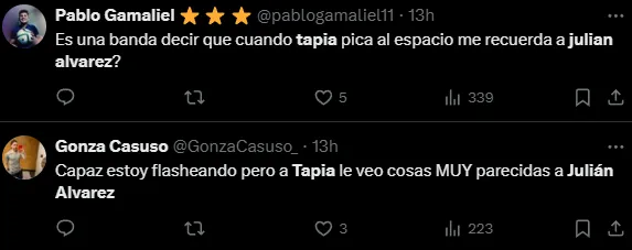 Algunos comentarios de los hinchas comparando a Gonzalo Tapia con Julián Álvarez: