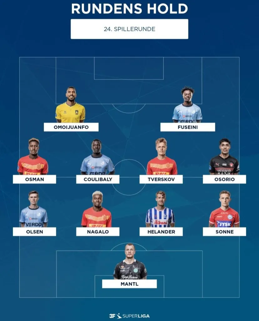 Dentro de la página oficial de la Superliga de Dinamarca, escogieron el once ideal de la 24 fecha y dentro de este onceno, apareció el atacante nacional como uno de los jugadores seleccionados.