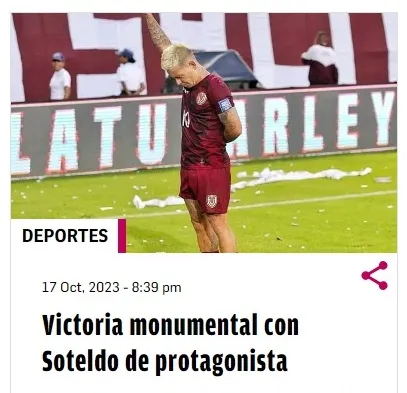 Y como era de esperar, la prensa de aquel país se volvió loca con la victoria y desde luego, realzando la figura de Yeferson Soteldo, como el gran jugador del compromiso disputado en Maturín.
