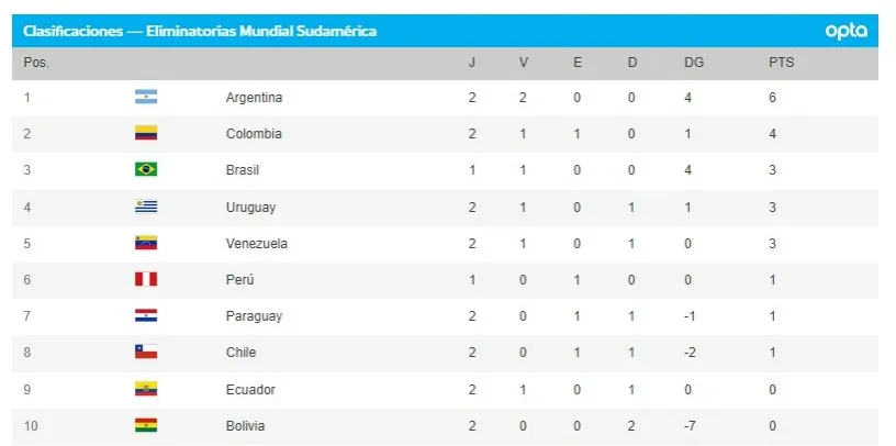 REVISA COMO QUEDÓ LA TABLA DE POSICIONES EN LAS ELIMINATORIAS SUDAMERICANAS