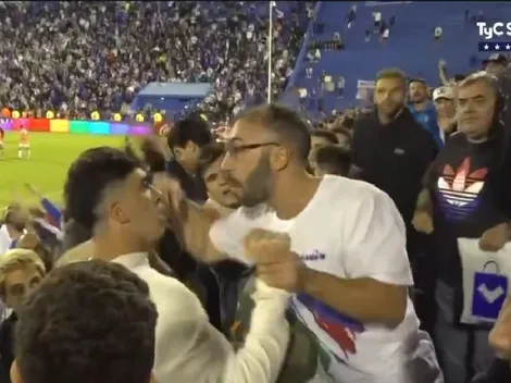 Hijos del ex entrenador de Colo Colo se enfrascaron en una ácida discusión en las tribunas con hinchas de Vélez Sarsfield.
