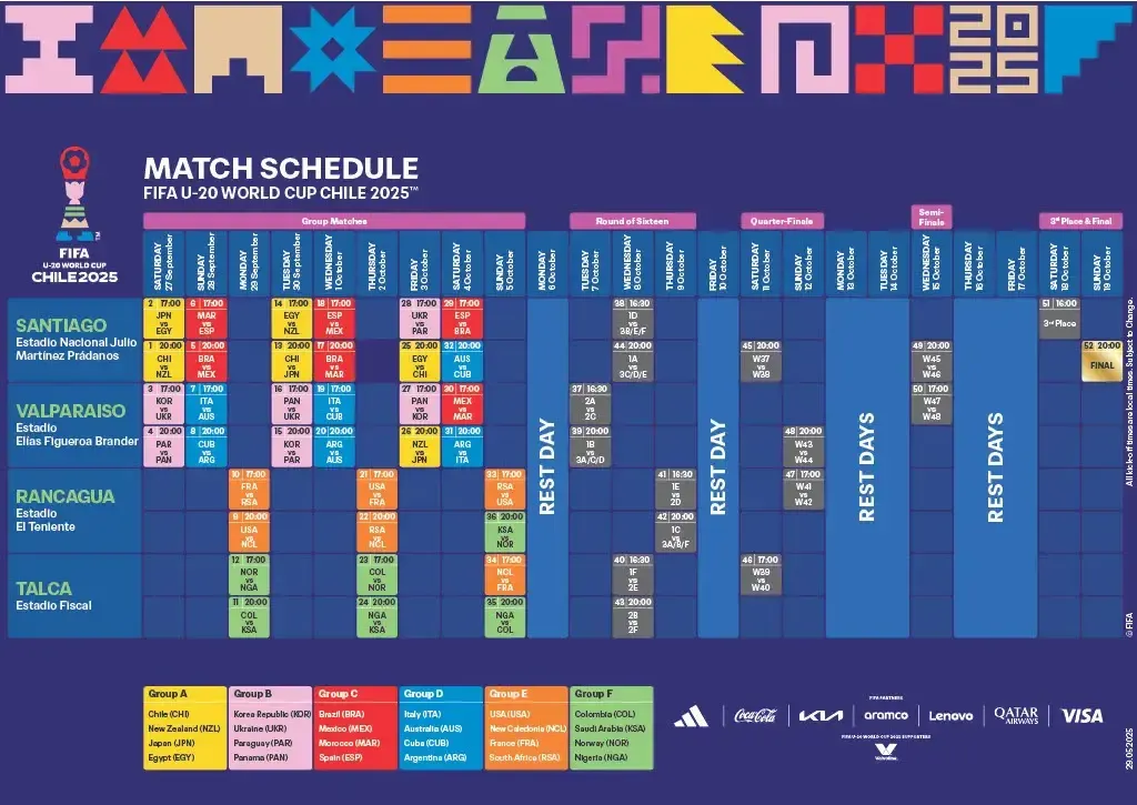 El cuadro de los octavos de final del Mundial Sub 20 Chile 2025 comienza a tomar forma. Ya están definidos los lugares de los primeros cuatro grupos del certamen (A, B, C y D). Este domingo, finalizados los cruces en los grupos E y F estará todo 100% confirmado.