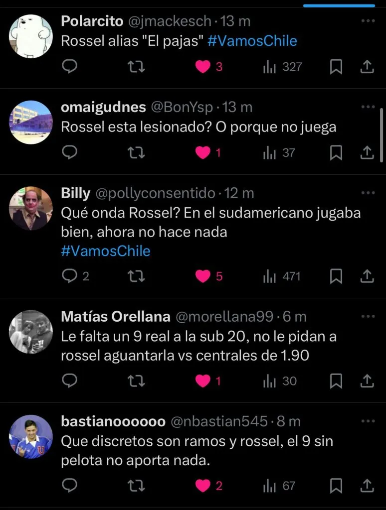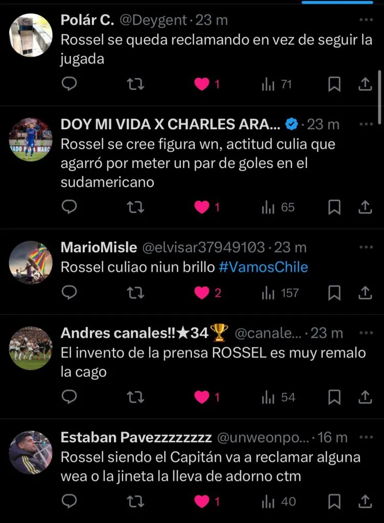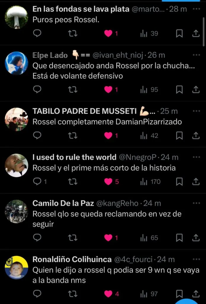 “¿Qué onda Rossel? En el Sudamericano jugaba bien y ahora no hace nada“, declaró otro hincha.
