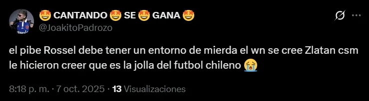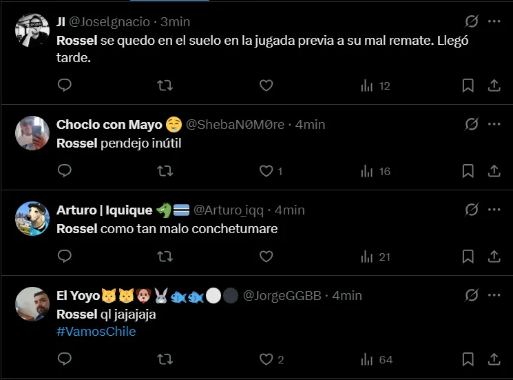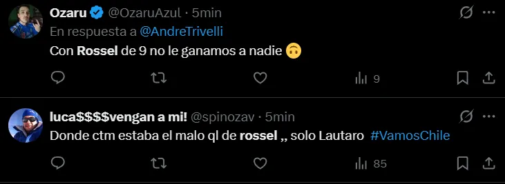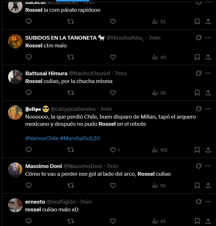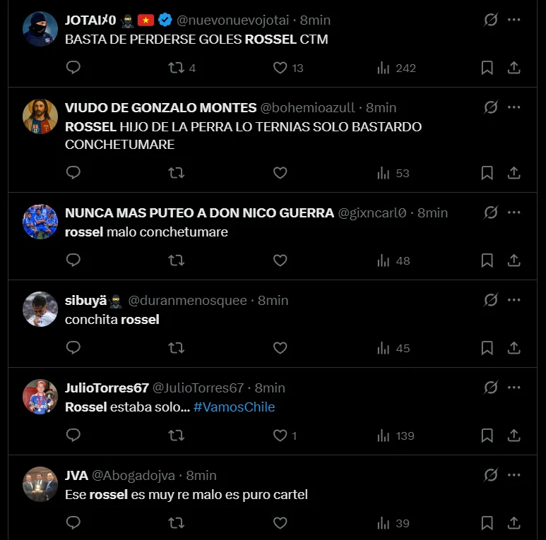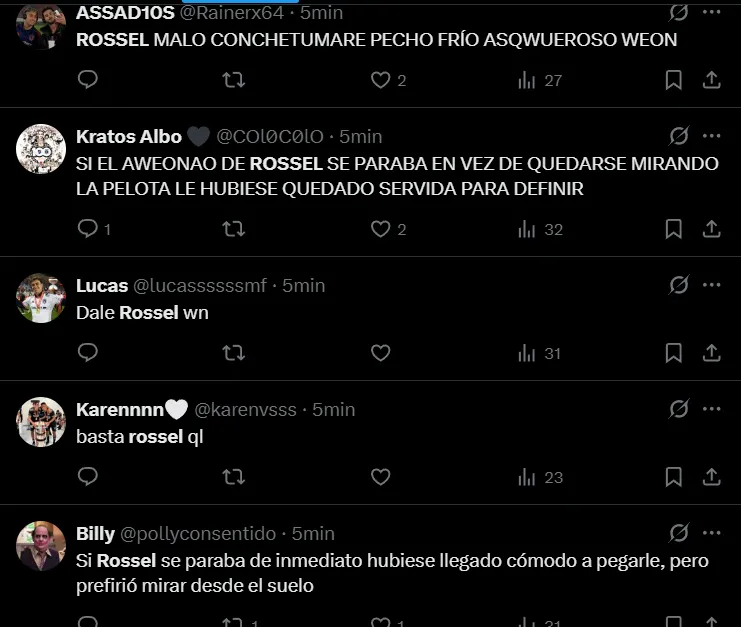 Algunos de los comentarios contra Juan Francisco Rossel tras perderse el gol: