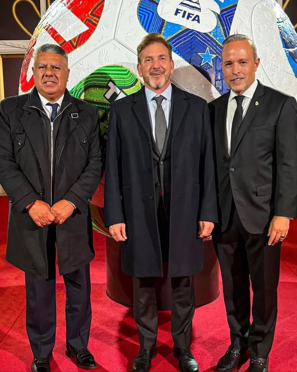 Claudio "Chiqui" Tapia, el presidente de la AFA, llegó al centro John F. Kennedy acompañado de Alejandro Domínguez, máxima autoridad de Conmebol, y el embajador de la AFA Tomás Regalado.