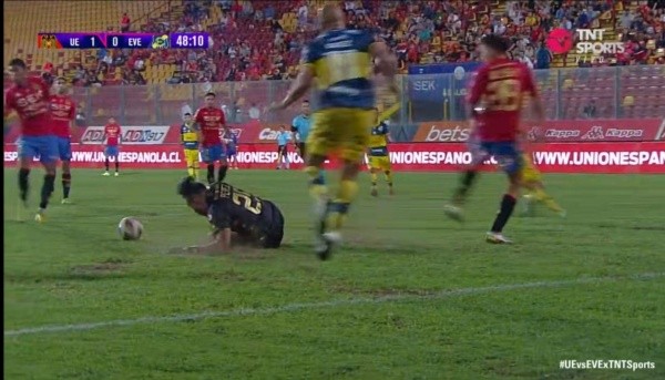 © Captura TNT Sports¿Cancha? del Estadio Santa Laura no mejora y vuelve a entregar un pobre espectáculo en duelo entre Unión Española y Everton