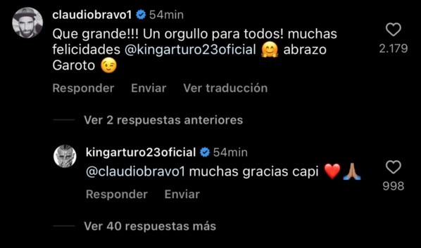 “Un grande, un orullo para todos. Muchas felicidades, Arturo. Abrazo garoto”, escribió Bravo y dejó un emoji con el ojo guiñando.