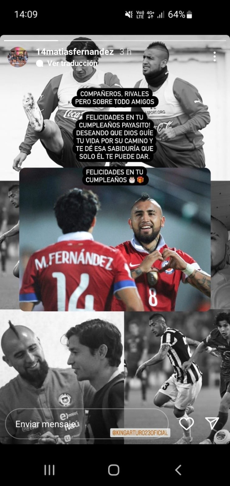 Uno de los mensajes más emotivos es el que le dedicó Matías Fernández en su cuenta de Instagram: “compañeros, rivales, pero sobre todo amigos. Felicidades en tu cumpleaños payasito”, le escribió el mediocampista de Deportes La Serena.