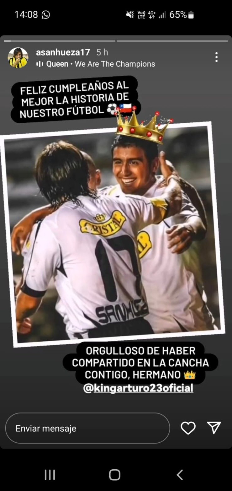 Otro ex compañero suyo en los albos que no se olvidó de él es Arturo Sanhueza, quien fue categórico en señalarlo como “el mejor de la historia de nuestro fútbol. Orgulloso de haber compartido en la cancha contigo, hermano”.
