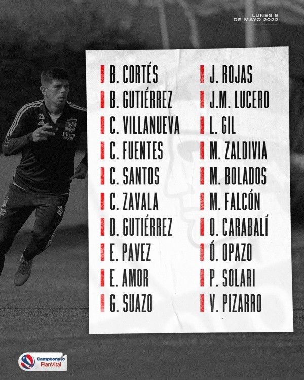 Los albos anunciaron la lista de convocados para trasladarse hasta la Región del Maule para visitar al elenco Tortero, donde tienen la posibilidad de volver a quedar como líder exclusivo del Campeonato Nacional 2022.