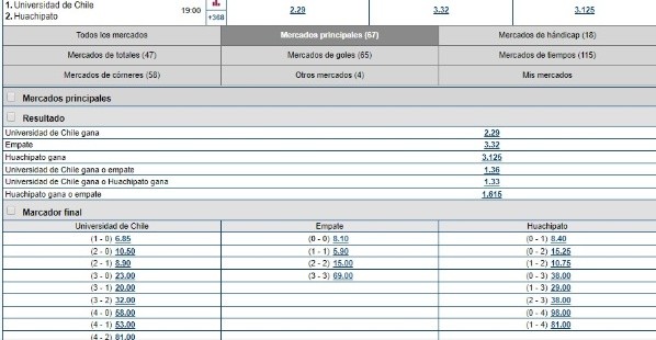 La Universidad de Chile es el favorito para quedarse con este compromiso y Marathonbetda a conocer que la U paga 2,29, mientras que los de Talcahuano 3.125. Desde luego puedes ingresar a Marathonbet y ver el detalle de cada uno de los momentos que el partido mismo puede entregar.