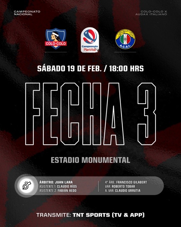 ��: @CampeonatoCL #ForzaAudax ���� pic.twitter.com/HTlcumIi16— Audax Italiano (��) (@audaxitaliano) February 19, 2022