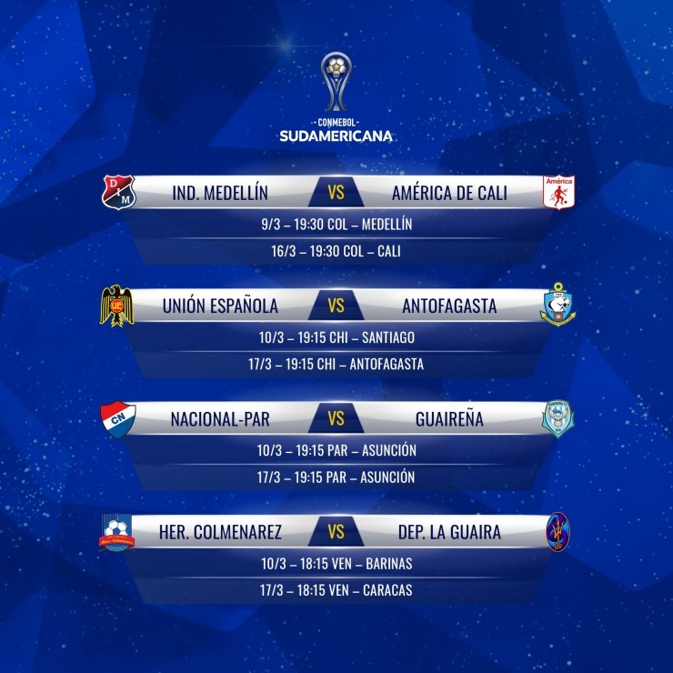 Por su parte, el duelo entre hispanos y pumas se disputará el duelo de ida el 10 de marzo a las 19:15 horas en Santiago, mientras que la vuelta en Antofagasta quedó programada para el 17 del mismo mes a la misma hora del primer duelo.