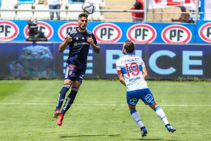 Joaquín Larrivey disputando su último clásico con Universidad de Chile. (Foto: Agencia Uno)