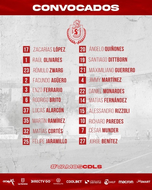 + Convocados de La Serena para el partido ante Curció Unido