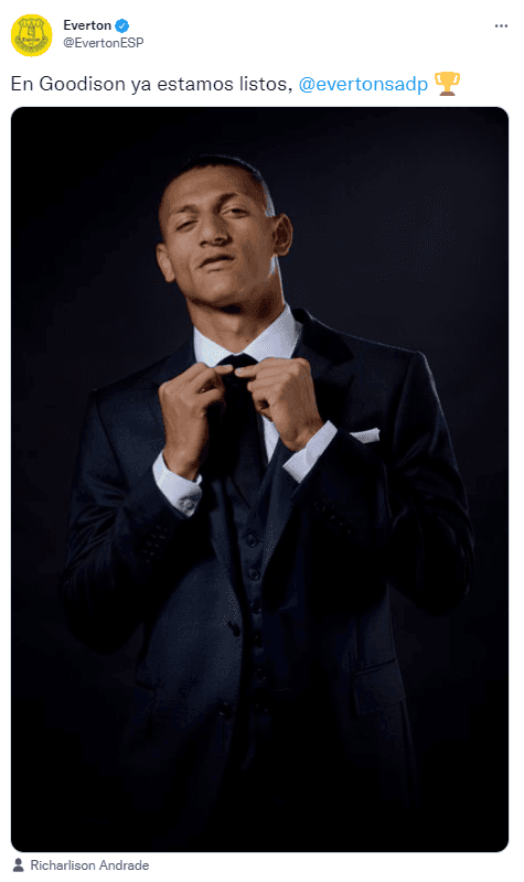 A través de las redes sociales del club inglés, pero en su cuenta en español, compartieron un mensaje alusivo al partido que tendrán los viñamarinos durante este compromiso en lo que será el debut durante la Copa Libertadores y lo hicieron con una foto del brasileño Richarlison.