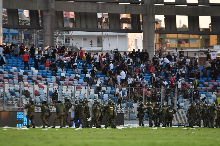 Fuerzas Especiales de Cabarineros intervinieron en problemas de barristas de Colo Colo. (Foto: Agencia Uno)