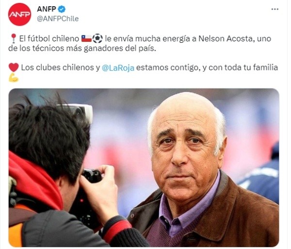 “El fútbol chilenole envía mucha energía a Nelson Acosta, uno de los técnicos más ganadores del país”, dice una parte del mensaje.