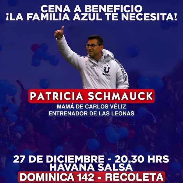 Es por eso y para intentar cubrir parte de esos gastos, es que la familia azul está organizando una cena a beneficio para este martes 27 de diciembre a partir de las 20:30 horas en la Havana Salsa, ubicada en la calle Dominica 142, en la comuna de Recoleta cercana al sector del Barrio Bellavista.