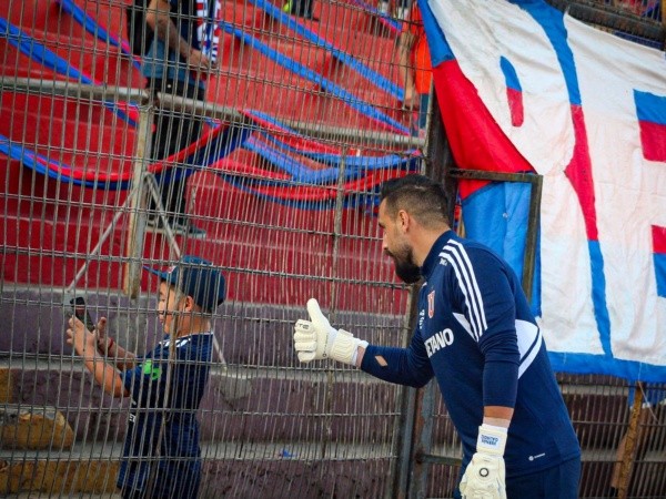Hernán Galíndez recibió el apoyo de los hinchas de la U antes de la victoria azul en el Santa Laura (Mirko Penha – Bolavip)