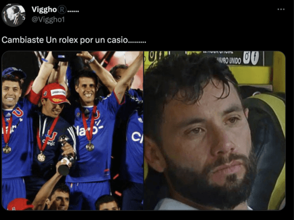 Una de ellas fue de un fanático azul denominado Viggo, quien armó una especie de meme para trolear en forma directa a Mena. El hincha, de paso, hizo alusión al hit de Shakira con Bizarrapcon la frase que recorrió el mundo: “Cambiaste un Rolex por un Casio“.
