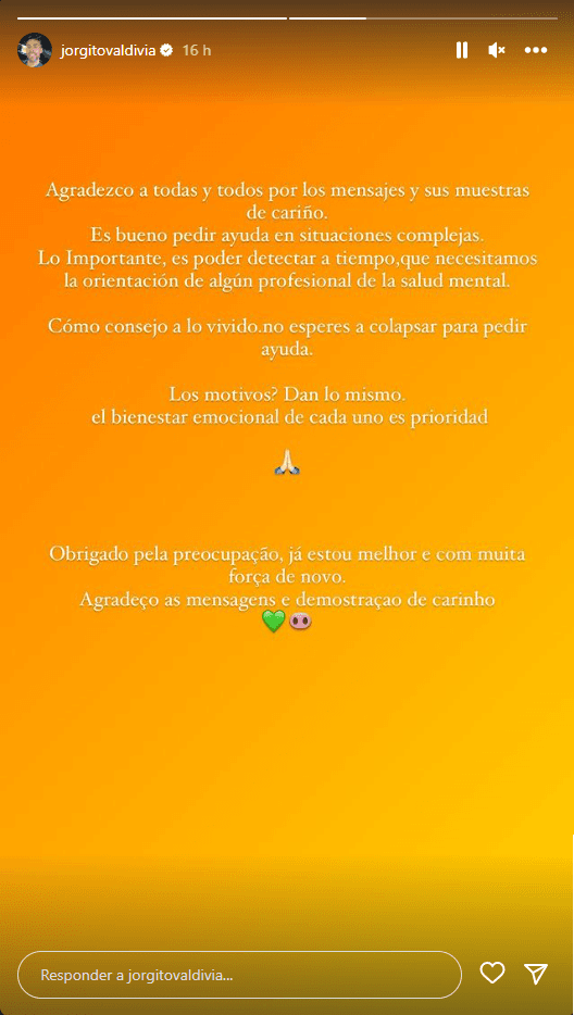 Ante esta situación, Valdivia apareció en sus redes sociales, y a través de una historia en Instagram le mandó un mensaje a sus seguidores. “Agradezco a todas y todos por los mensajes y sus muestras de cariño”, comenzó diciendo el Mago.