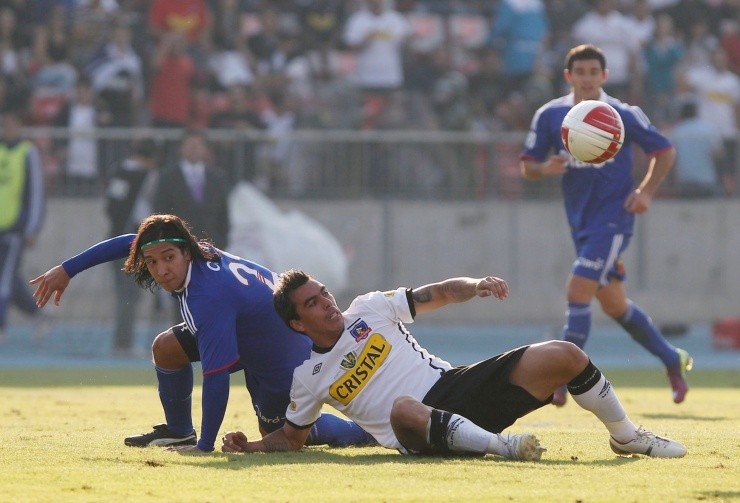 Abarca marcando a Paredes en el Superclásico del fútbol chileno | Foto: Agencia Uno