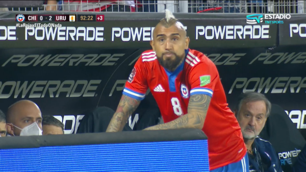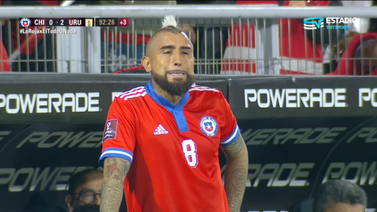Muy cerca de finalizar el partido ya se veía a un Arturo Vidal muy afectado. El King que fue reemplazado sobre el final y desde el banco se veía la desazón de ver como se escapaba la posibilidad de ir a la Copa del Mundo.