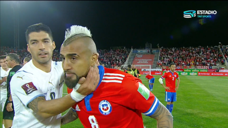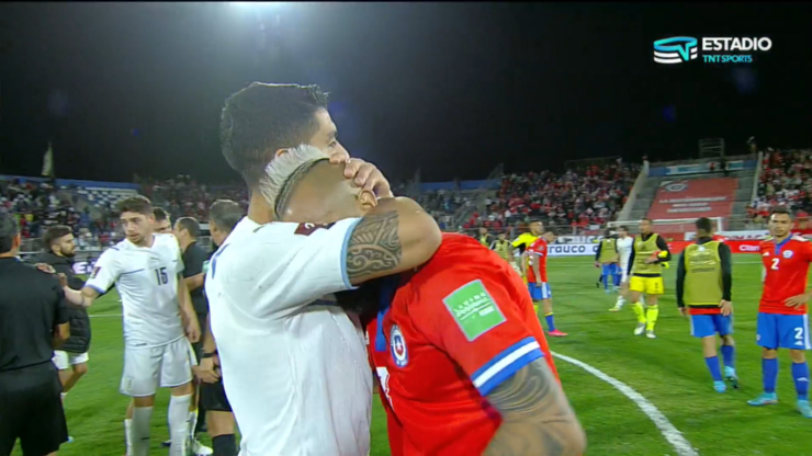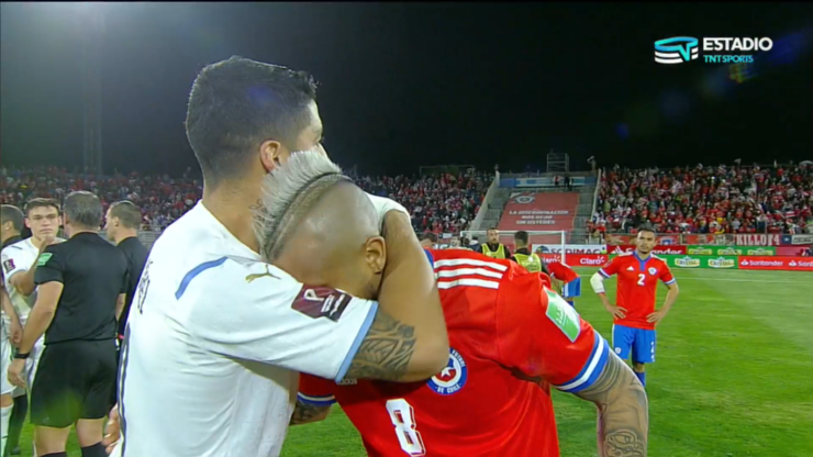 En el caso del delantero tuvo un abrazo y cruce de palabras con su amigo Vidal en el centro de la cancha.