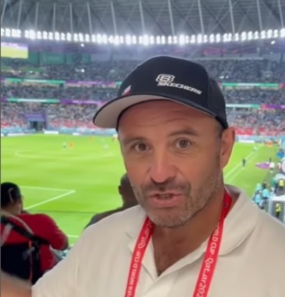 Un hecho particular se produjo el domingo 27 de noviembre en el contexto del partido de España ante Alemania por la Copa del Mundo de Qatar 2022, en el cual, en las afueras del Estadio Al Bayt, el comunicador se encontró con un hincha español, madrileño y de nombre Jorge Güil. De manera impensada, el aficionado ibérico tuvo palabras para la Universidad de Chile señañando que”es un referente,un referente mundialLa U”, fueron las aseveraciones por el cuadro azul. Sobre la misma, Salinas consultó “¿Usted no siguió el campeonato chileno últimamente?“. Una pregunta que se dio en el contexto de una previa de fútbol, donde la espontaneidad y tomar la temperatura de los aficionados es la premisa y que de manera impensada, pero llamativa, se hizo referencia a los azules de parte de este español, interrogante que no cayó muy bien en algunos forofos estudiantiles.