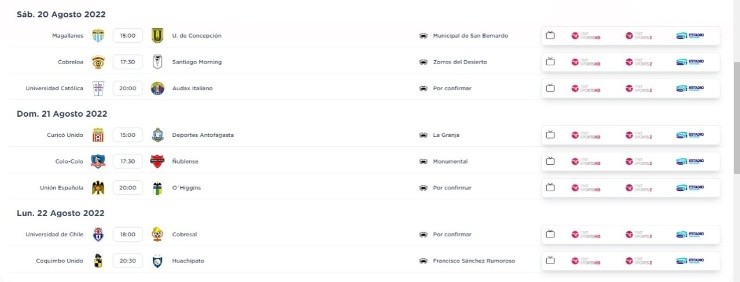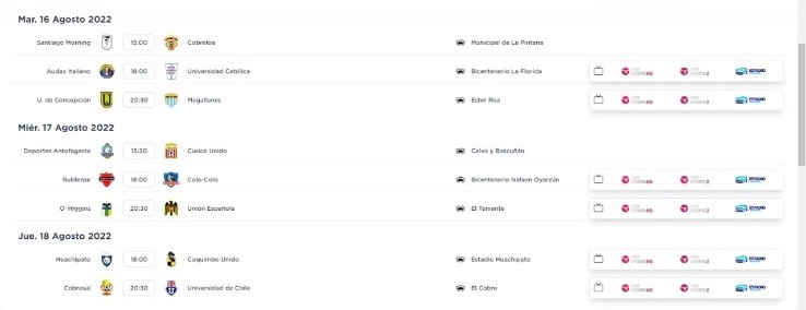 Por otra parte, la Universidad de Chile, se tendrá que medir ante Cobresal, en donde el partido de ida se disputará en el Estadio El Cobre el jueves 18 de agosto a las 20:30 horas, mientras que la vuelta será el lunes 22 del presente mes a las 18:00 horas en estadio por definir.