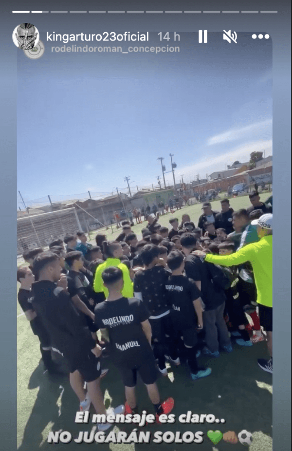 Ayer, en la antesala del compromiso, Rodelindo recibió la visita multitudinaria de todos los chicos que actúan en su filial en la Región del Biobío. Esos mensajes sí fueron reposteados en su Instagram por Vidal, quien está atento a todo lo que ocurre con su club.
