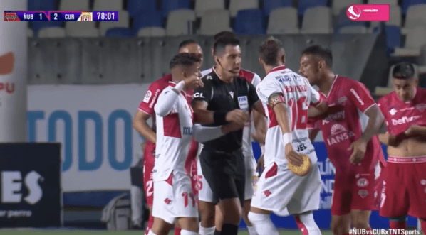 El charrúa acusó dolor y magnificó, claramente, un manotazo por parte del hombre de Ñublense. La trannsmisión de TNT Sports no captó el momento, pero desde la Barra de “Los Rediablos” que sigue al cuadro chillanejo empezaron a caer rollos de papel y un inédito proyectil: un par de sopaipillas.