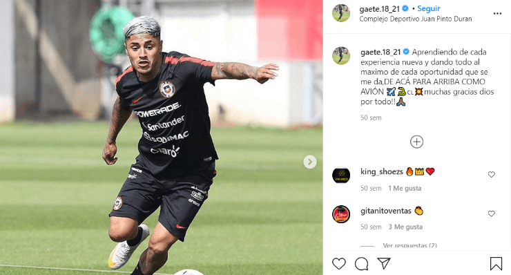 El actual delantero de Cobresal ya ha estado en nóminas de los microciclos | @gaete.18_21 Instagram