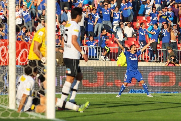 Díaz celebrando su gol en el 5-0 ante Colo Colo en el Superclásico del fútbol chileno | Foto: Agencia Uno